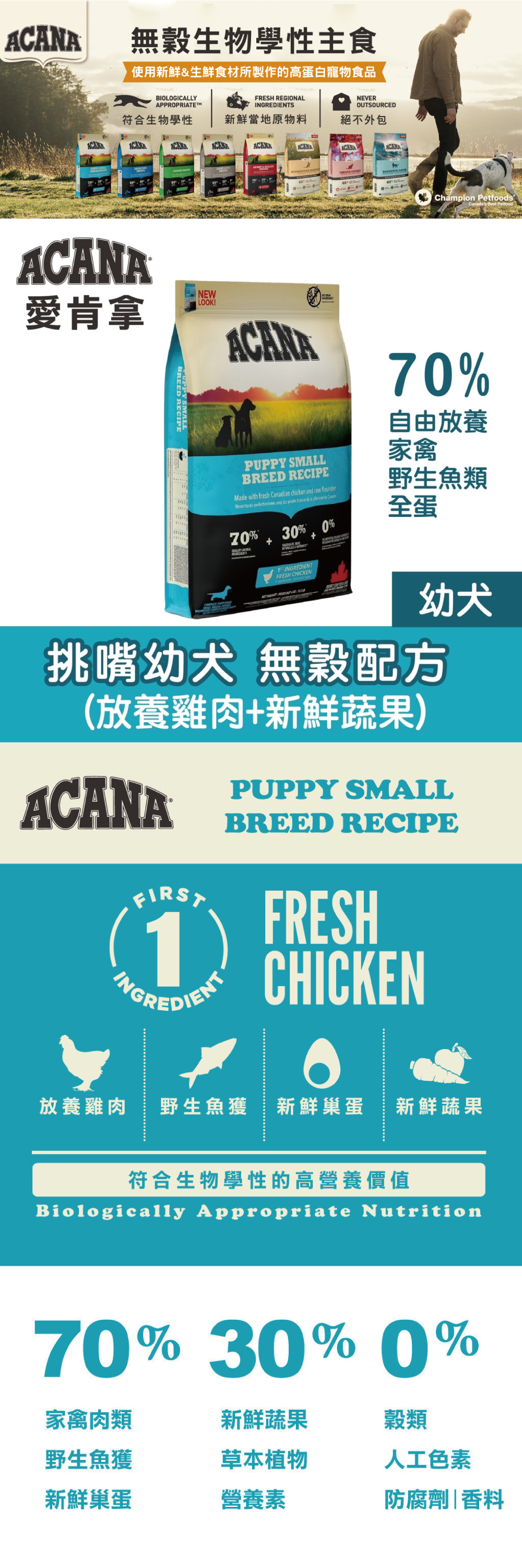 愛肯拿Acana【放養雞肉&新鮮蔬果】2kg(無穀)(挑嘴幼犬)