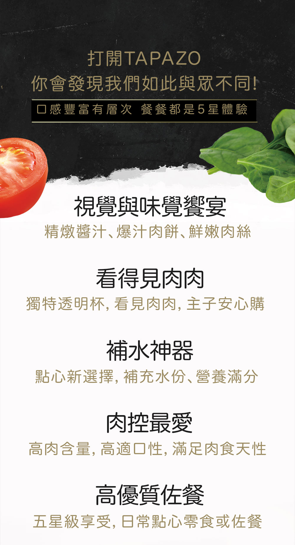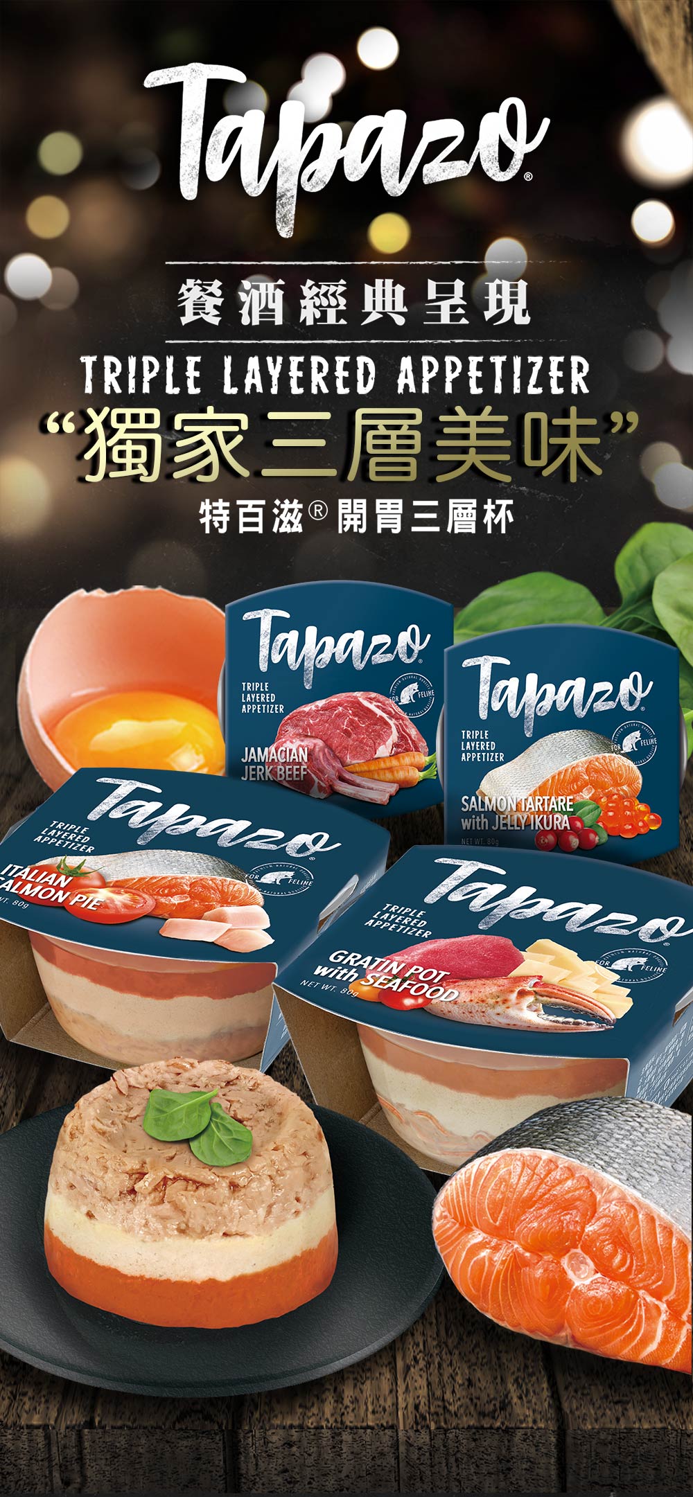 "承襲餐酒館經典佳餚,復刻餐前下酒料理的美味,讓貓狗在家也能享受五星級美食"