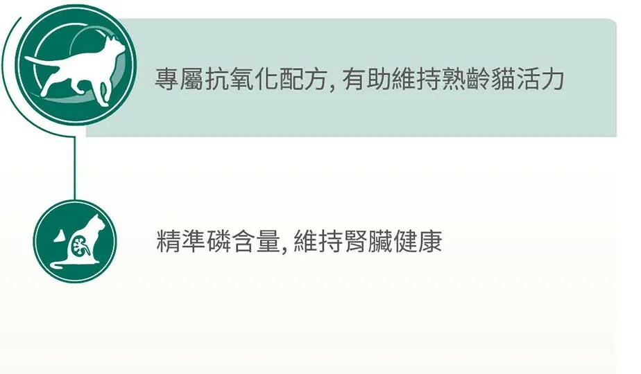 · 專屬抗氧化配方,有助維持熟齡貓活力